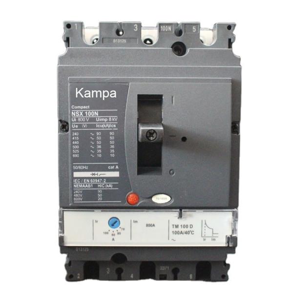 Schneider Compact NSX type molded case circuit breaker(Electronic MCCB) is one of new type breakers which our company adopts international advanced design, manufacture technology to develop. The rated insulating voltage is 950V. Suitable for AC 50Hz (60Hz). Rated working voltage 690V or below, rated working current is 12.5A to 630A of circuit and used in distributing electric energy. Non-frequent making and breaking in the normal conditions and protecting when circuit and installation are overload, short circuit and lacking voltage. Rated shell-rack and the breaker whose current is under 400A, take protection effect when mouse cage motor's non-frequent start, breaking off working and protecting form overload, short circuit and lacking voltage. The product conforms to GB14048.2, IEC 60947-2 standards.